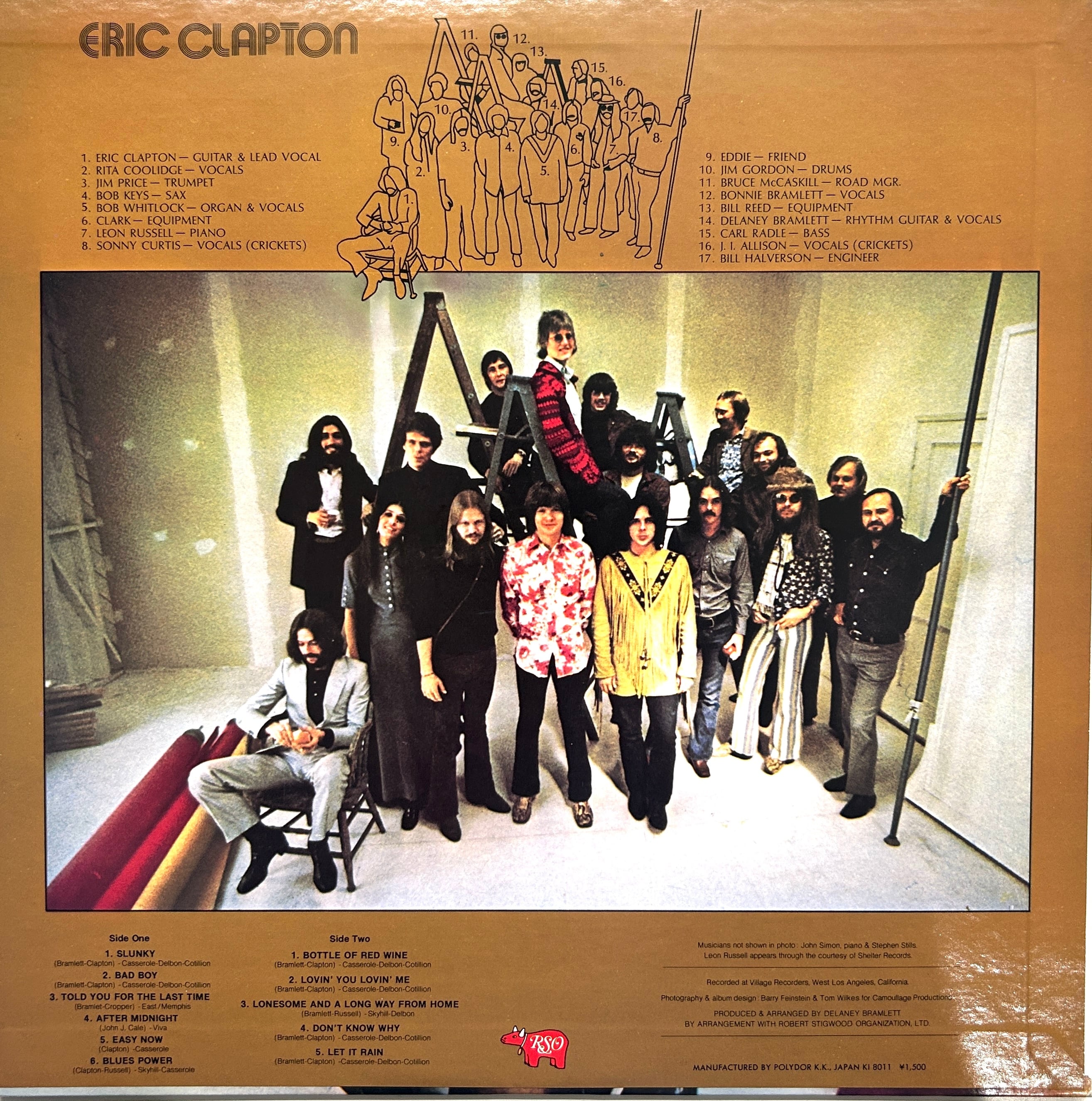 LEON RUSSELL、BOBBY WHITLOCK、CARL RADLE、JIM GORDONら、のちのDOMINOS勢が脇を固め、アルバムのラストを飾るB5.LET IT RAINにはSTEPHEN STILLSが参加。その他、J.J. CALEをカバーしたA4.AFTER MIDNIGHTなどを収録。