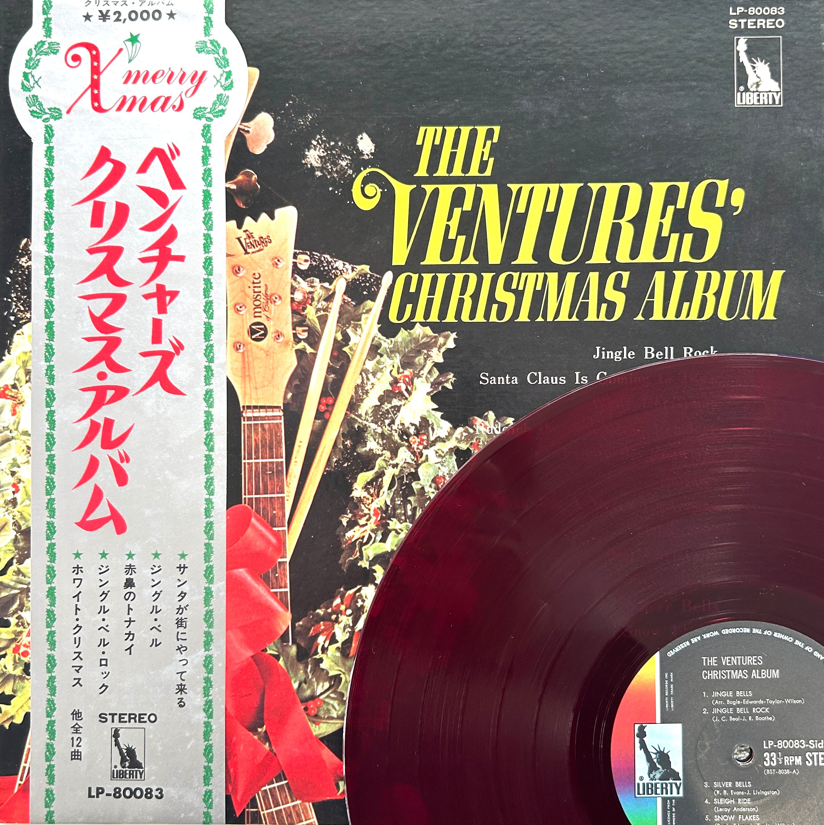 アメリカ西海岸のインストバンドTHE VENTURES。当作は、1965年に出たクリスマス企画盤で、誰もが知っているキャロルをおなじみのエレキサウンドでガッツリ塗り替えた一枚。赤盤仕様やゲートフォールドジャケットなど、コレクション的にも人気が高いプレス。