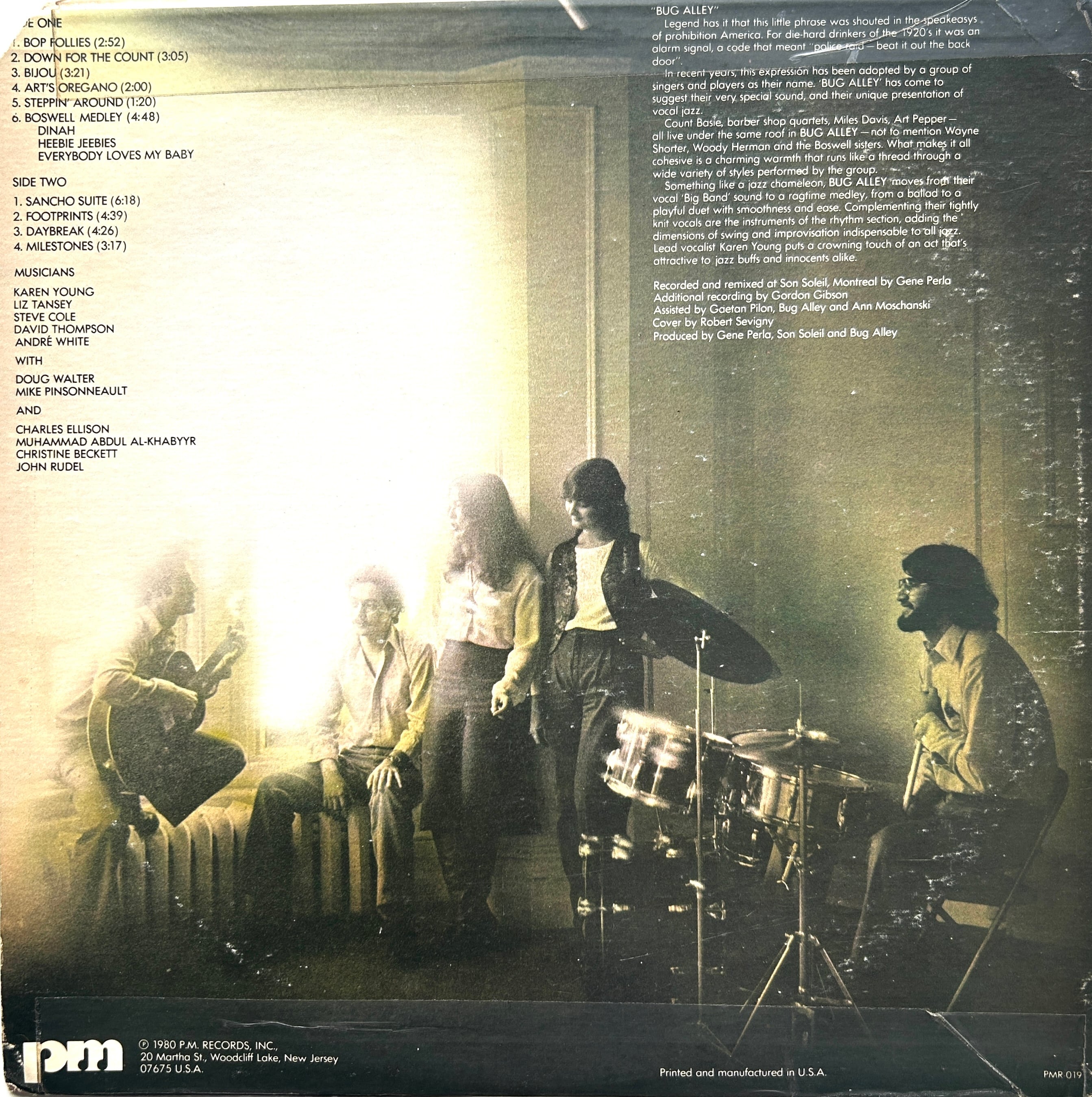 カナダ発の男女混声コーラス・グループBUG ALLEY。KAREN YOUNGらを擁し、スウィング〜ボッサ〜ジャズ・ファンクまでを、全編スキャットとタイトなコンボ編成でまとめ上げた唯一のアルバム〈BUG ALLEY〉。1980年発表、PM RECORDSからのプライヴェート感濃厚な1枚で、90年代以降クラブ・ジャズ再評価を受けた作品。。