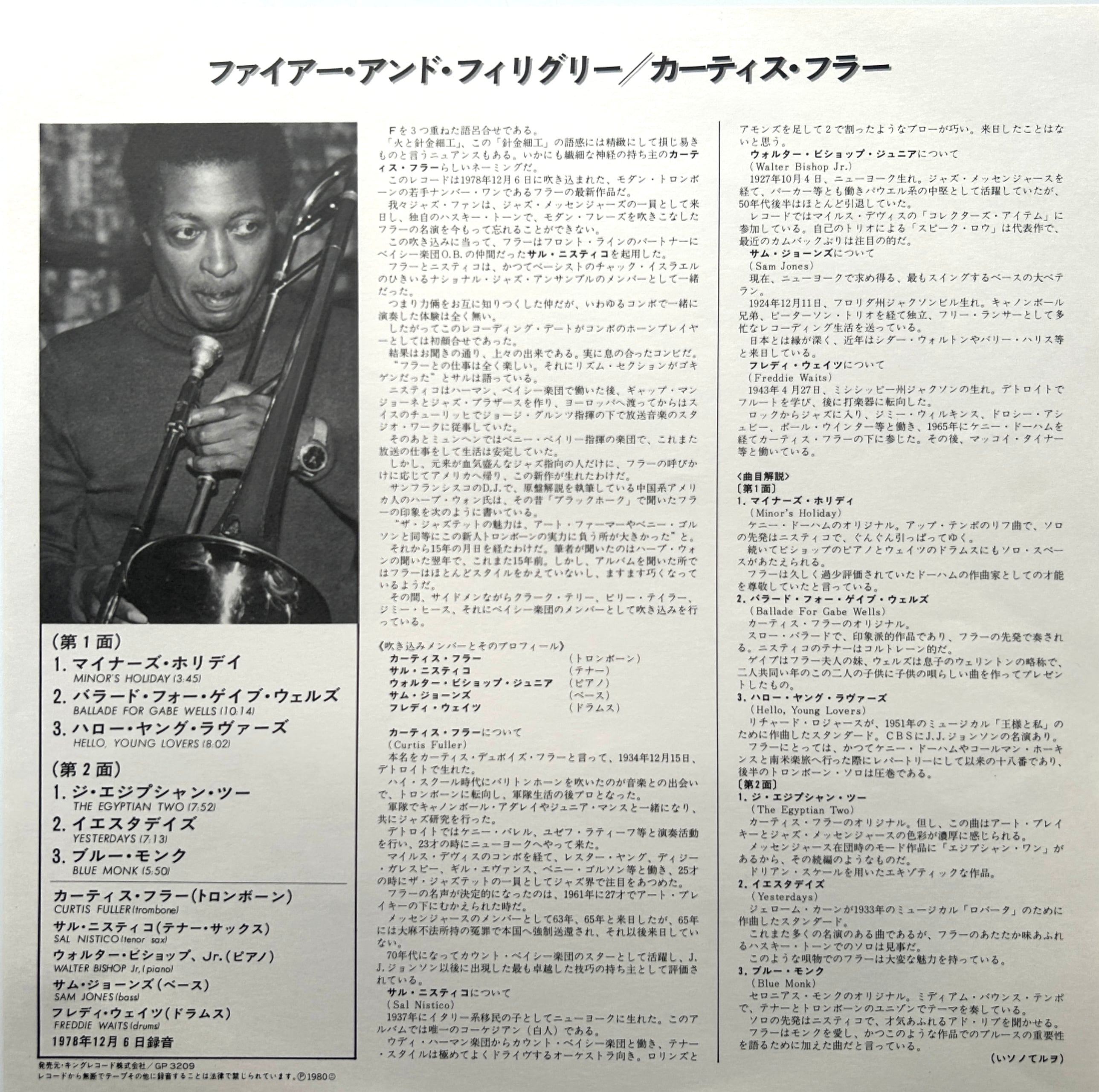 デトロイト出身トロンボーン奏者CURTIS FULLERが、70年代終盤に残した硬派ハードバップ作がFIRE AND FILIGREE。
