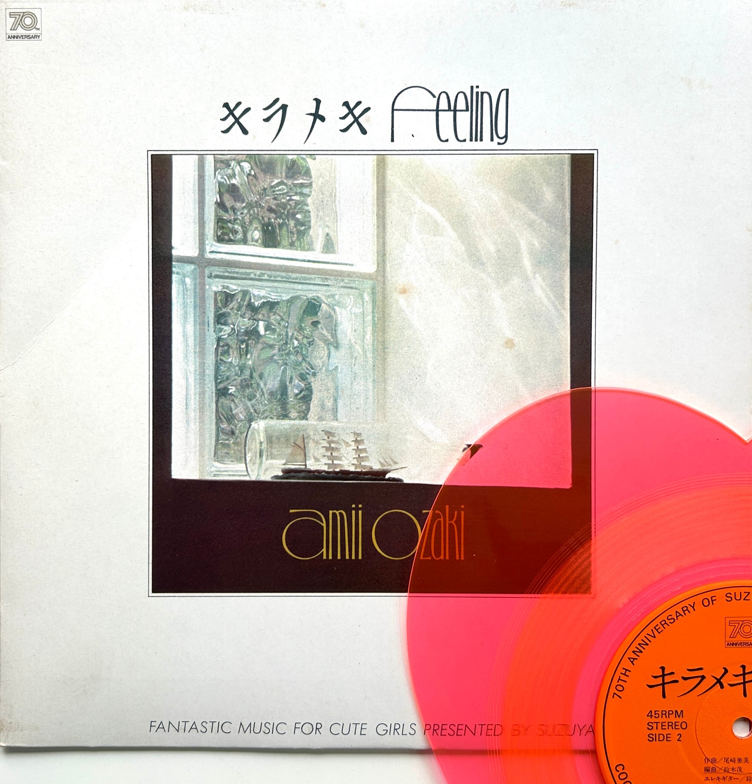 尾崎亜美のキラメキ FEELINGは、老舗百貨店SUZUYAの70周年記念として制作されたハート型10インチ。クリアピンクヴァイナルという仕様だけでも十分に驚きなのに、中身もちゃんと良い。