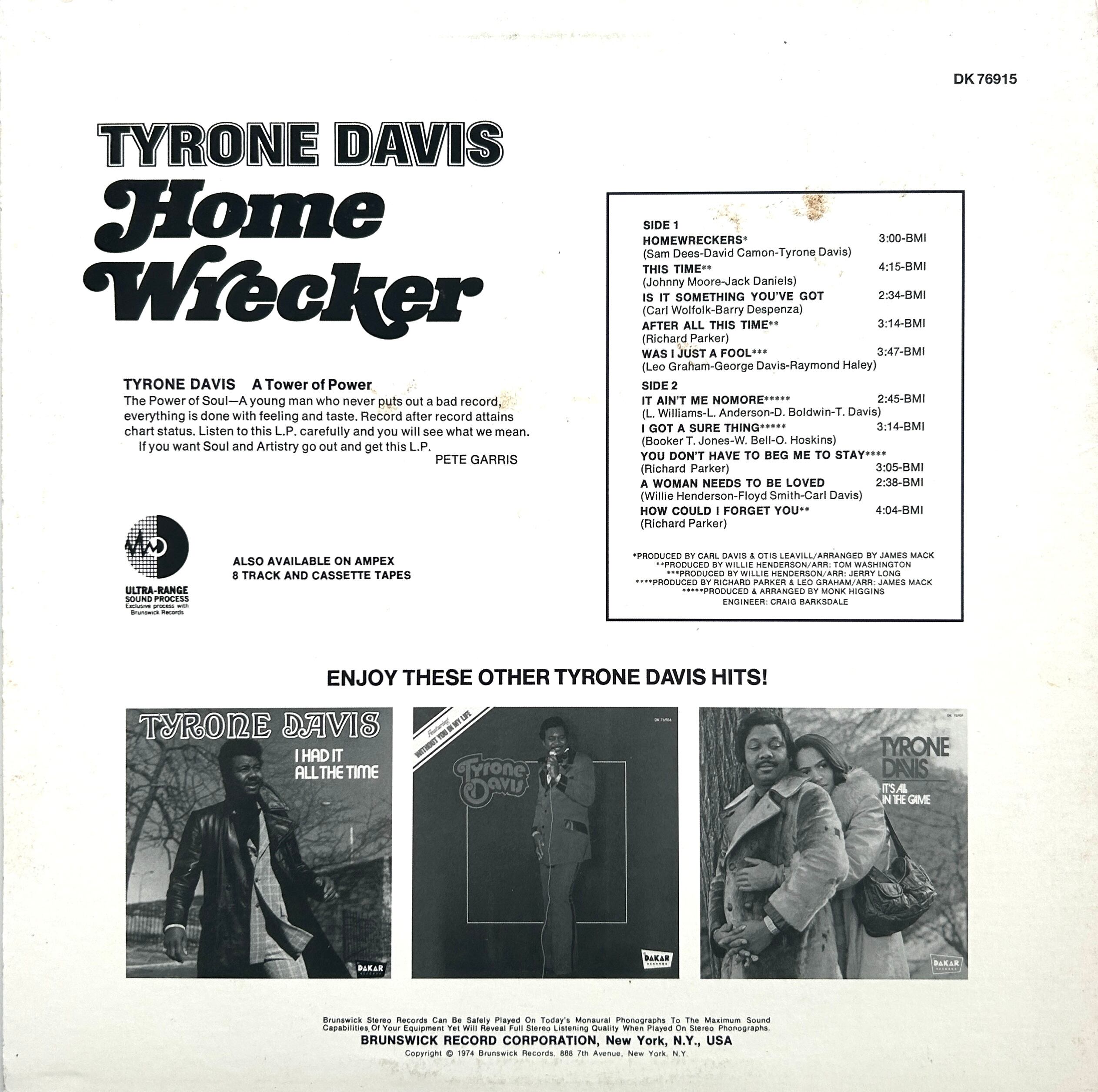 ミシシッピ生まれシカゴ育ちのソウルシンガーTYRONE DAVIS。代表曲TURN BACK THE HANDS OF TIMEやIN THE MOODで知られるシカゴソウルの柱のひとり。