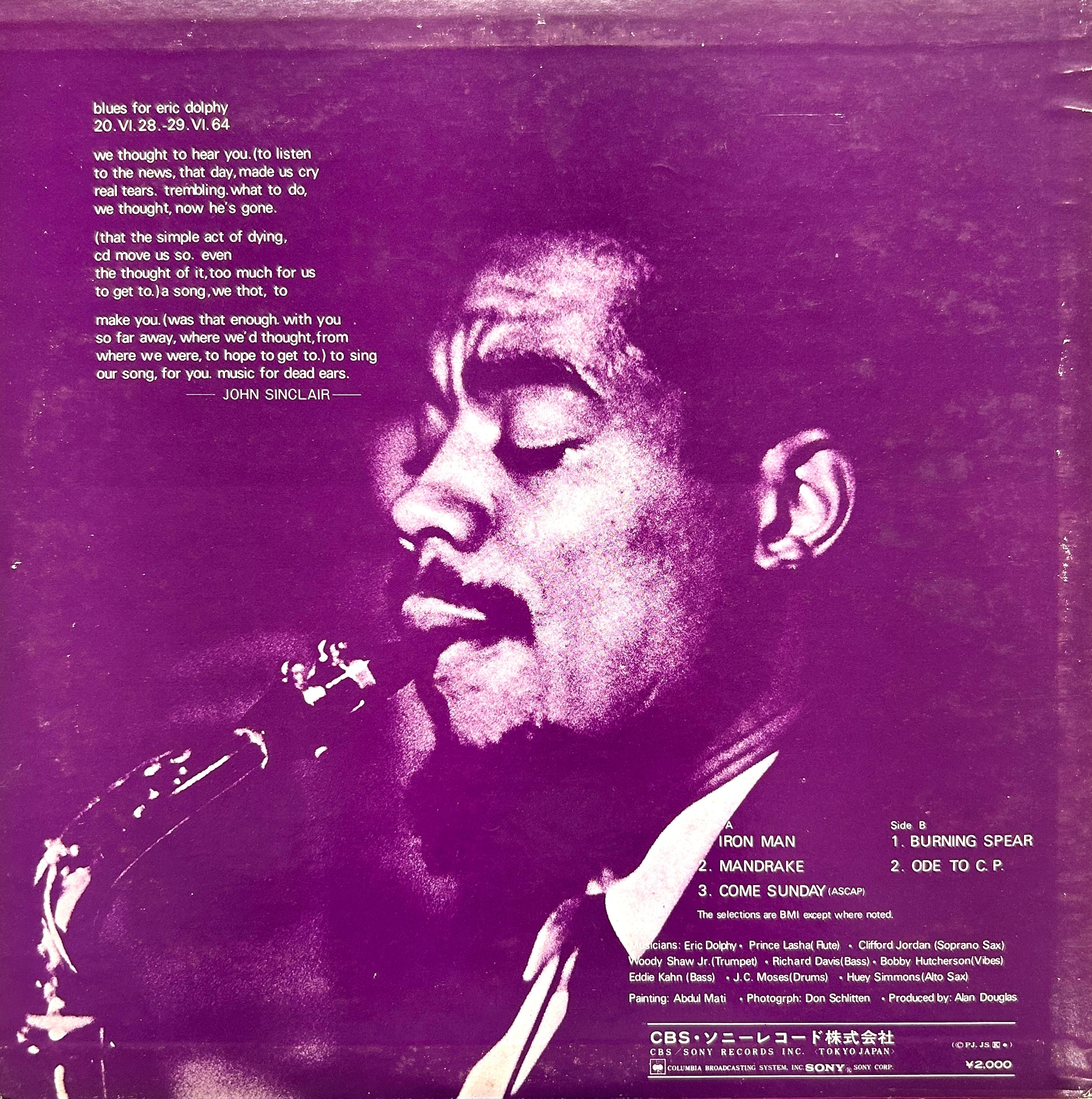デュークエリントンの有名な作品を、バス・クラリネットのドルフィーとベースのリチャード・デイビスがデュエットしているA3.COME SUNDAY、ジャッキー・バイアードのODE TO CHARRLIE PARKERと同一作品のB2.ODE TO C.Pなどを収録。